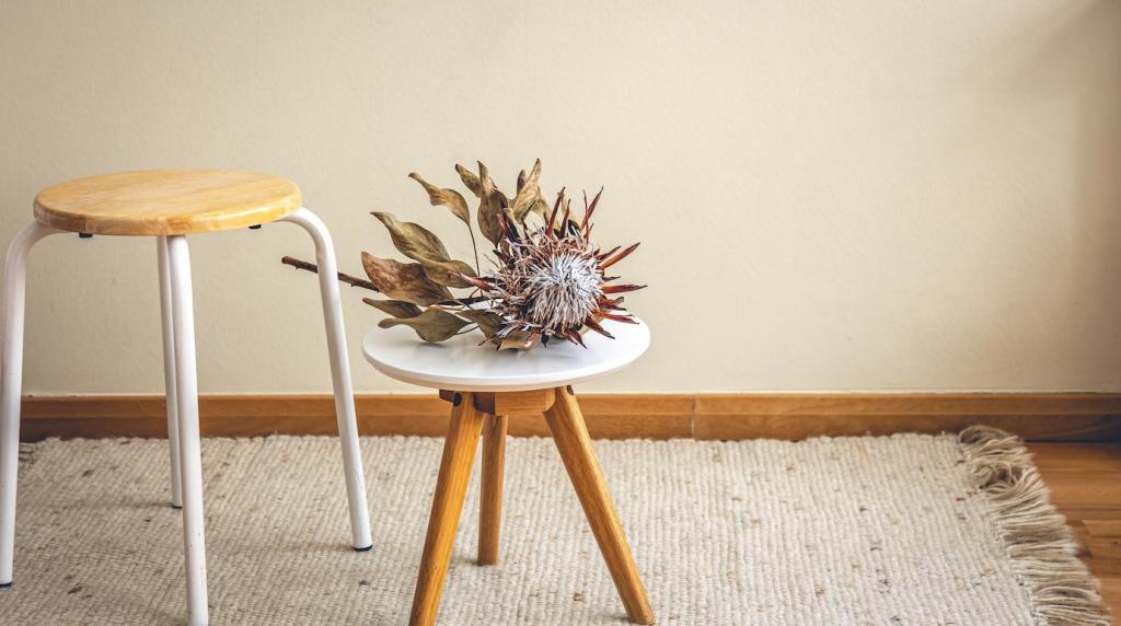 Ein Spritzer Essig im lauwarmen Wasser löst Kalk und neutralisiert Gerüche, während reine Naturseife sanft Fette bindet. Arbeiten Sie immer gut ausgewrungen, wischen Sie in Holzmaserrichtung und trocknen Sie anschließend nach. So bleibt die Oberfläche ruhig und gesund.